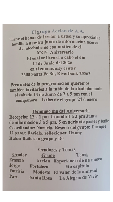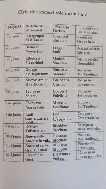 DISTRITO 56 ÁREA 07 Y LA OFICINA INTERGRUPAL DEL VALLE CENTRAL, CA