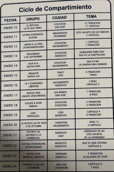 DISTRITO 56 ÁREA 07 Y OFICINA INTERGRUPAL DEL VALLE CENTRAL, CA