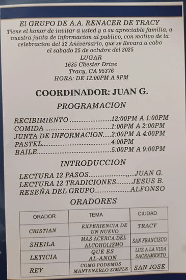 GRUPO RENACER DE TRACY 309 W 11TH ST TRACY,CA 95376